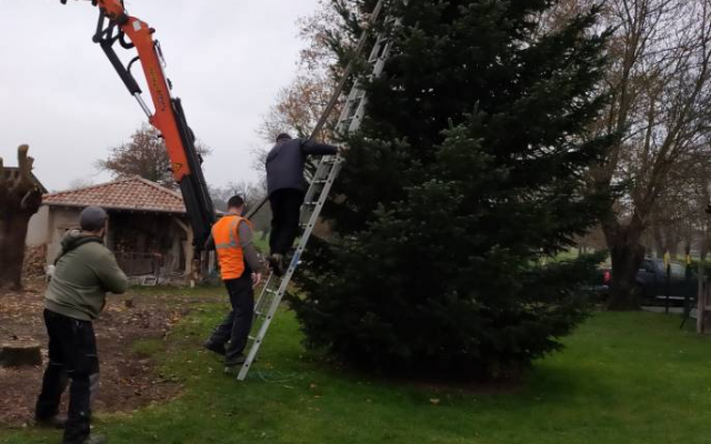 Retrouvez en photos l’abattage du superbe sapin de Noël et son arrivée sur la place de la mairie :