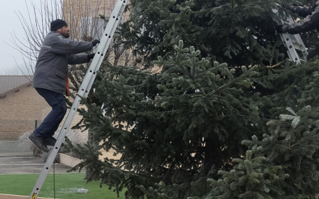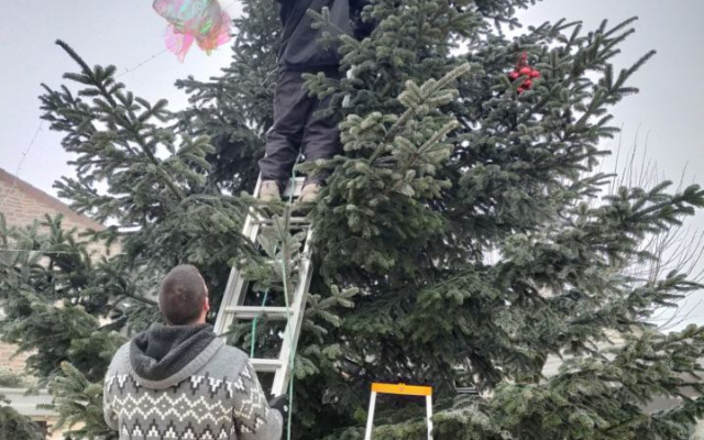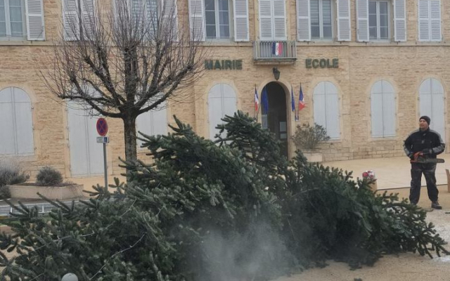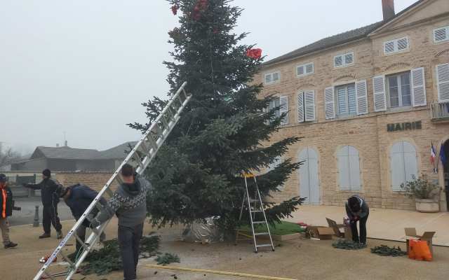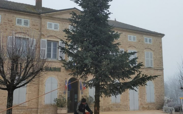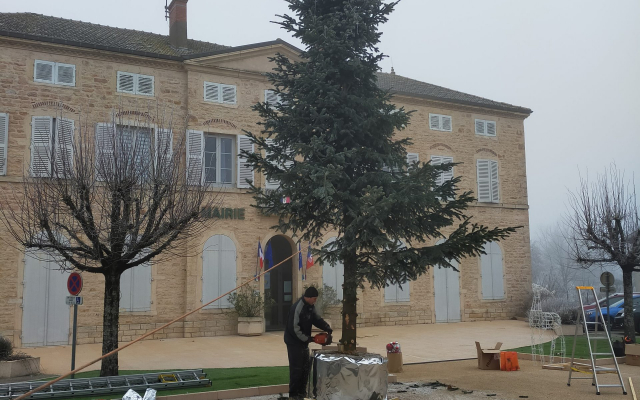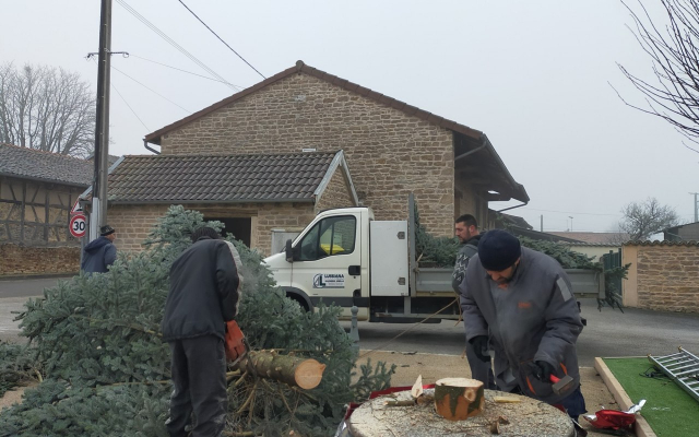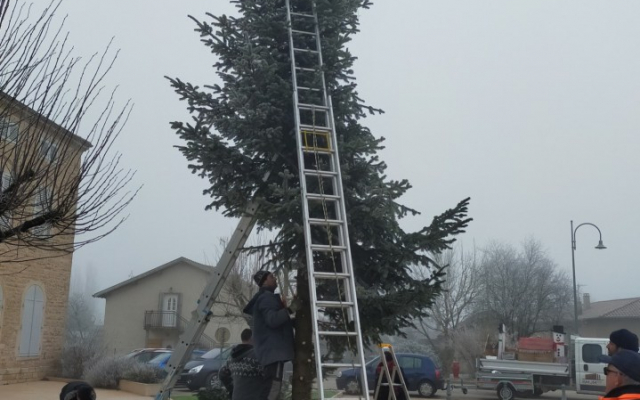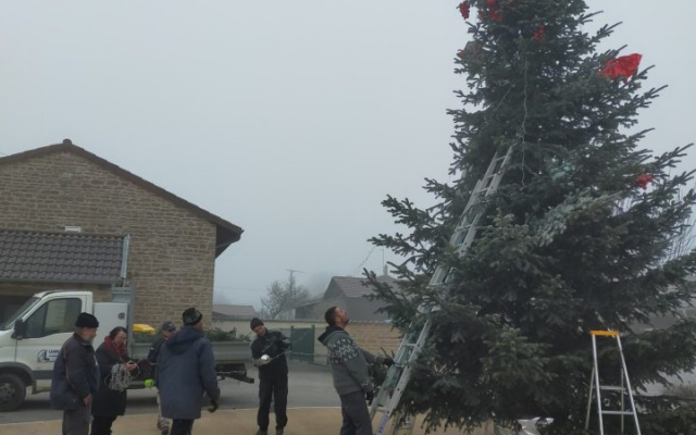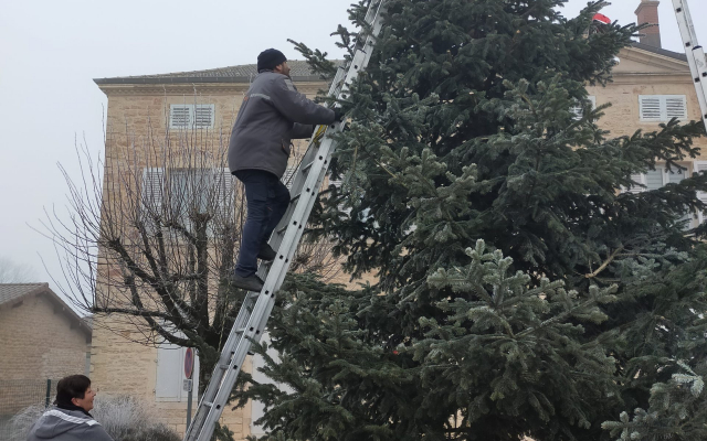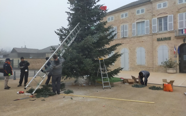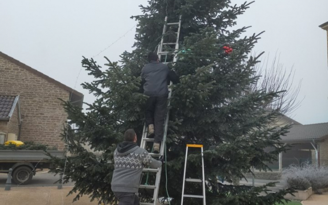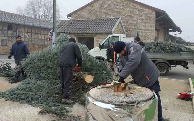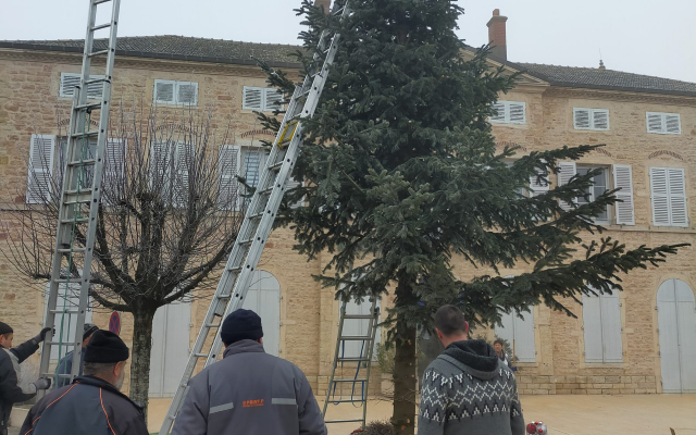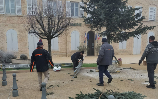 Ce samedi 15 Janvier 2022, une poignée de courageux a bravé le froid afin de retirer le sapin de 7 mètres qui a accueilli les décorations de Noël.