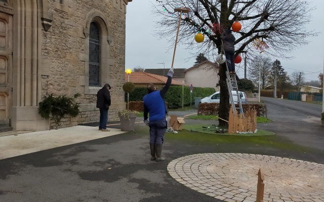 Ce samedi 3 décembre, des bénévoles et des membres du comité des fêtes se sont donnés rendez-vous vers 9h du matin pour décorer le village .