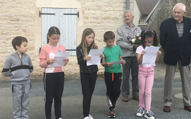 Puis ce sont les élèves de CM1 et CM2 Ambre et Samuel qui ont récité le joli poème « Liberté « de Paul Eluard.