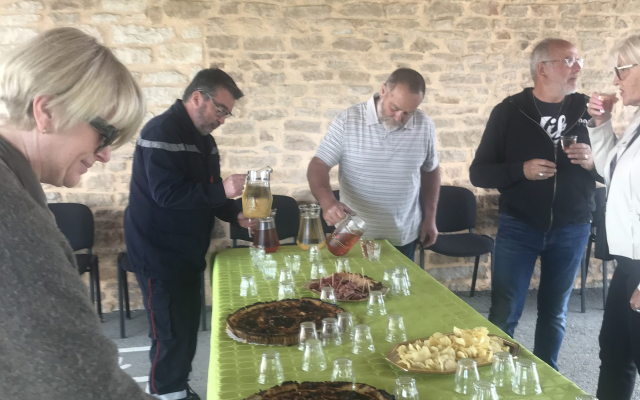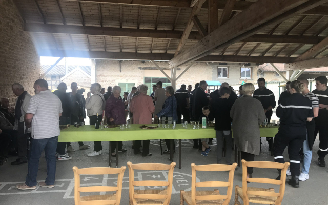 La cérémonie s’est terminée par un vin d’honneur sous le préau de l’école.
